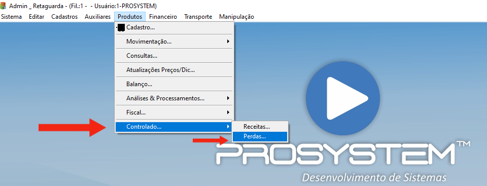 Admin >> Produtos >> Controlados >> Perdas.